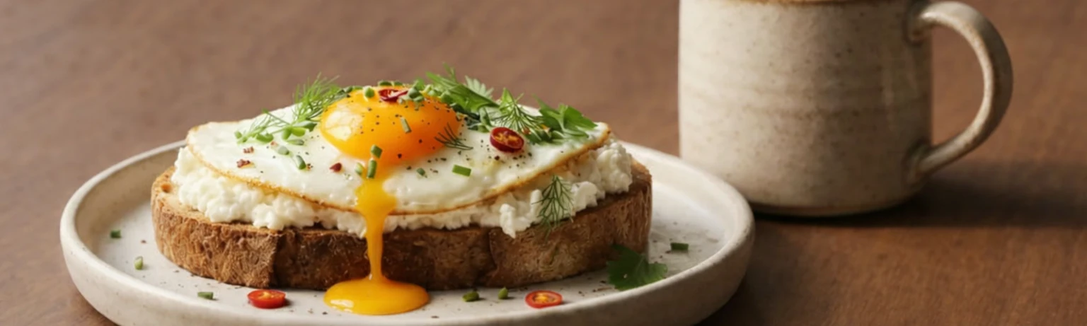 This fried egg ricotta toast recipe offers a balanced mix of protein and healthy fats that helps keep you full and energized. Eggs provide essential amino acids and choline for brain health, while ricotta adds calcium and slow digesting protein. When paired with whole grain bread, it becomes a satisfying, nutrient dense meal.